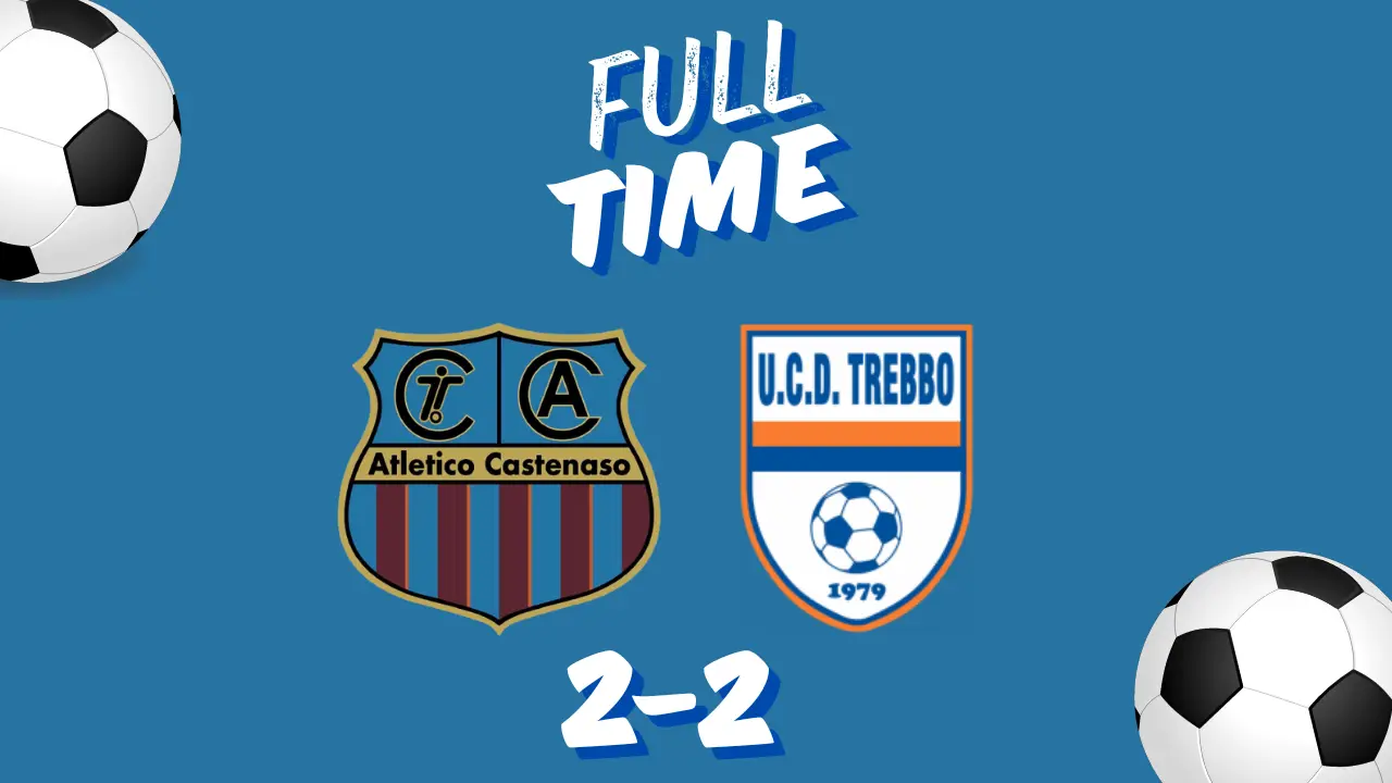 Al sesto minuto Garuti sblocca il match in tap-in sugli sviluppi di corner. 60 secondi dopo Marchi riporta in parità il risultato con una bella conclusione sul palo lontano. Vinjolli atterra il numero 8 avversario e viene ammonito. Al 20esimo Bergami prende il posto di Sbriglia. Il neo entrato ci prova subito di testa, Locchi respinge. Staffetta Rana-Venzi al 22’. Minuto 25, gran dribbling in area di Bolelli che conquista il rigore. Va il 10 e gonfia la rete: minuto 26, 2-1. Macaluso prende il posto di Maddaloni al 27’. Giallo a Bertolone per proteste. Girandola di cambi per il team away: Zanzani-Ganzaroli al 32’ e Negrini-Fabbri al 35’. Al 40esimo tris di cambi: Saleh-Mineo e Serra-Zanetti per Dovesi, Garelli lascia il posto a Zaccherini. A 3 minuti dalla fine arriva il pareggio di Di Salvo. Ammonito Gabrielli nel finale di match. Triplice fischio arbitrale, dopo 5 minuti di recupero, è 2-2 tra Atletico Castenaso e Trebbo.